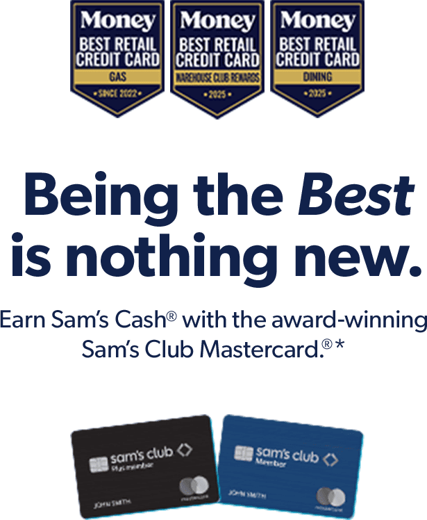 *Subject to credit approval. See the “How to Earn Sam’s Cash with your Sam’s Club Mastercard” reward program terms for details.